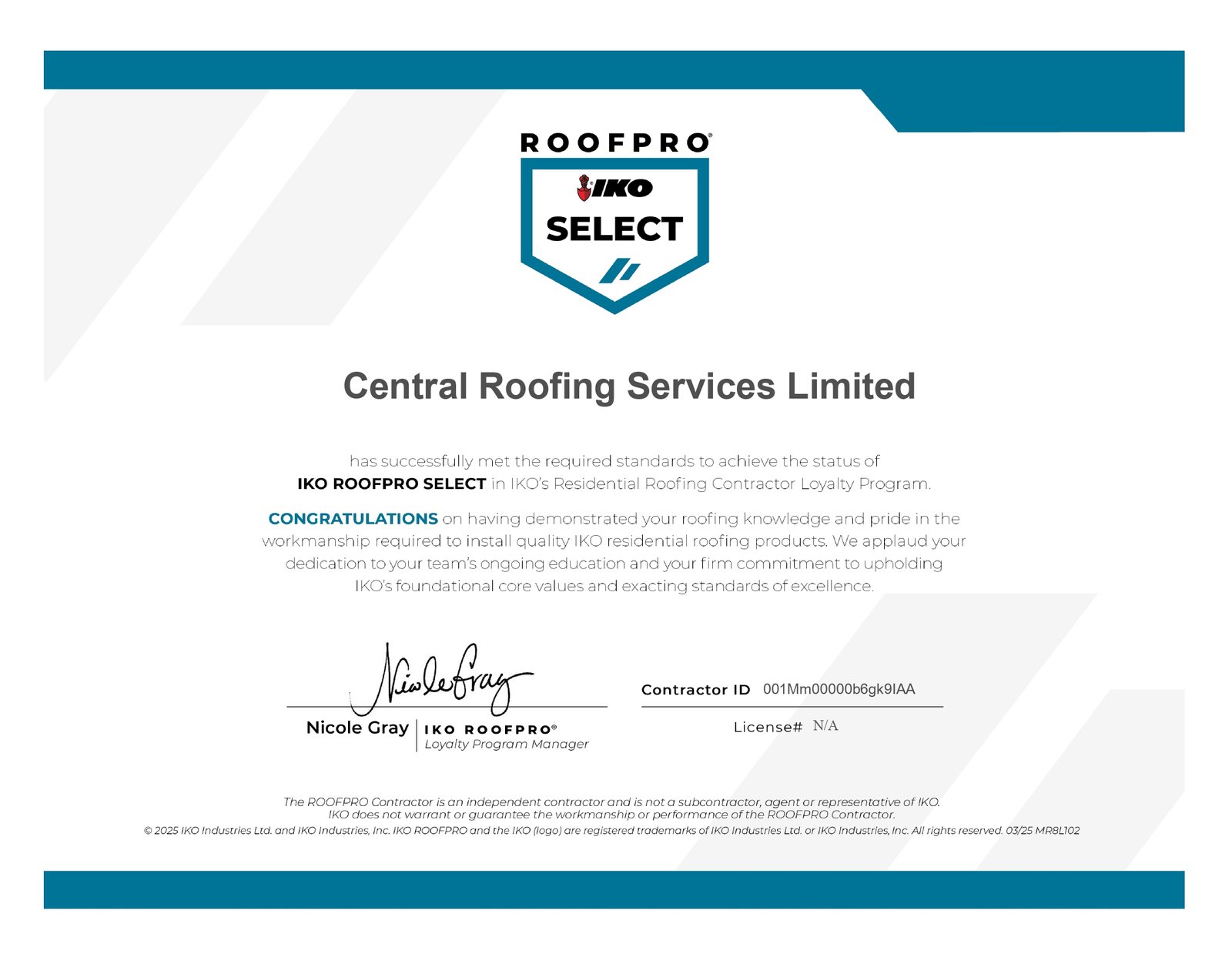 CENTRAL ROOFING is IKO Certified, which isn’t just a badge; it is a promise. Every roof we touch meets IKO’s exacting standards. We don’t cut corners. Each shingle is laid with care, precision, and a lot of know-how. You get a roof that doesn’t just sit there; it performs, season after season.